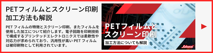 スクリーン印刷では素材のわずかな厚みのムラがインクの膜厚が不均一の原因になります。PETフィルムは製造段階で均質性が高く保たれており、印刷精度が求められる電子部品にも対応できます。