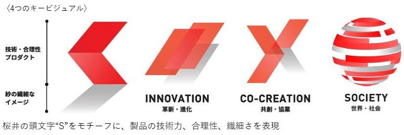 また、レッドメタリック箔で表現した4つのシンボルは当社ホームページのキービジュアルになっており、それぞれ以下のメッセージが込められております。